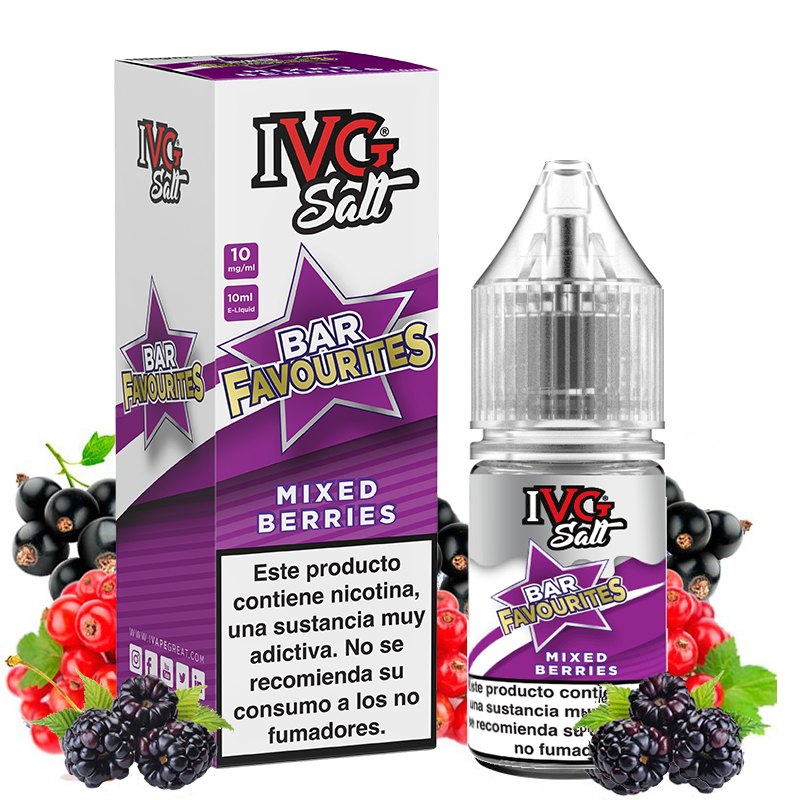 El líquido Mixed Berries de la gama Bar Favourites de IVG Salts sabe a deliciosas bayas mixtas maduras. ¡Un irresistible sabor que atrapa sin remedio!