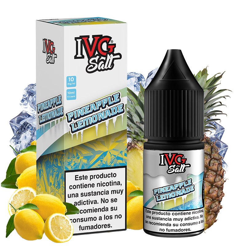 El líquido Pineapple Lemonade de IVG Salts ofrece un delicioso sabor a piña madura, dulce y jugosa, mezclada con un chorrito de limonada picante y con un toque helado.