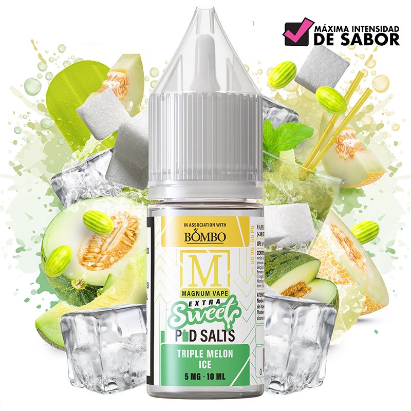 El líquido Triple Melon Ice de Magnum Vape Extra Sweet Pod Salts brinda una EXPLOSIÓN DE SABOR, gracias a la jugosidad de tres tipos de melón combinados con un toque refrescante de hielo para una explosión de sabor afrutado.